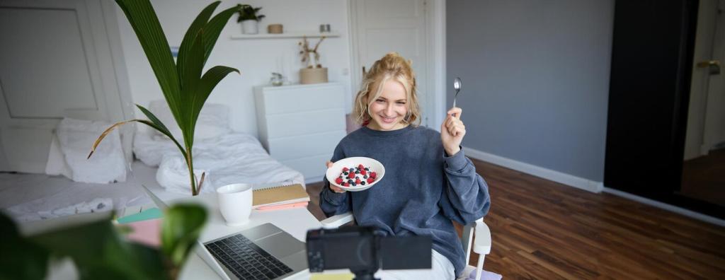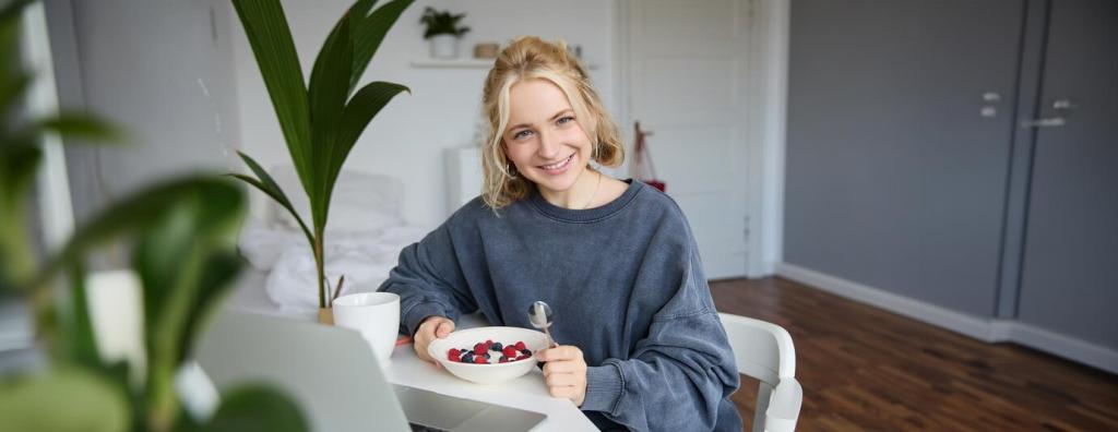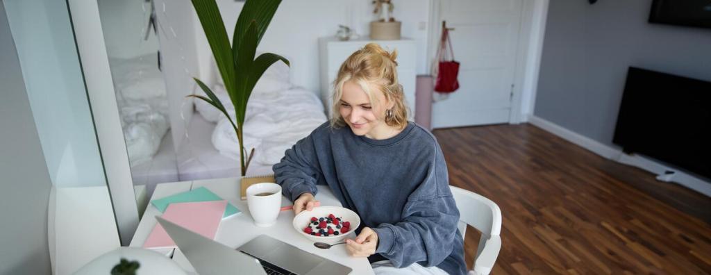Try cottage cheese with cinnamon and pear, chia pudding with cacao nibs, or frozen grapes with a few pistachios. They bring fiber and protein together, taming cravings while satisfying a sweet tooth. Ideal for freelancers who want calm energy during research or outlining sessions without sugar spikes.